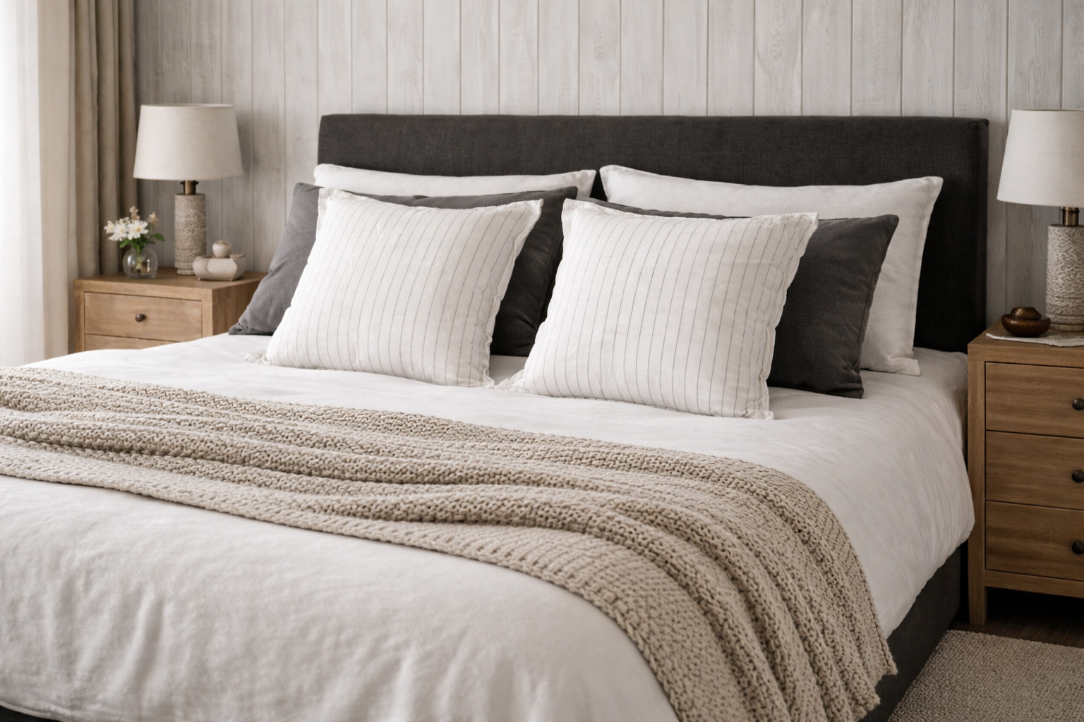Su diseño a rayas en acabado natural refleja una estética atemporal y versátil, ideal para ambientes de inspiración mediterránea, minimalista o contemporánea.