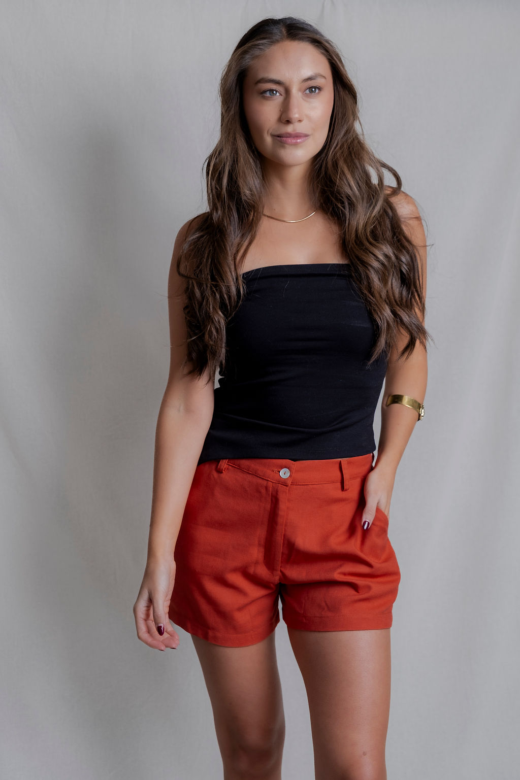 Short de calce relajado confeccionado en lino natural, ideal para climas cálidos y días de verano. Su diseño incluye pretina cómoda, bolsillos laterales y terminaciones suaves. Disponible en los colores masilla (arena claro) y terracota, ambos inspirados en paisajes del Mediterráneo.